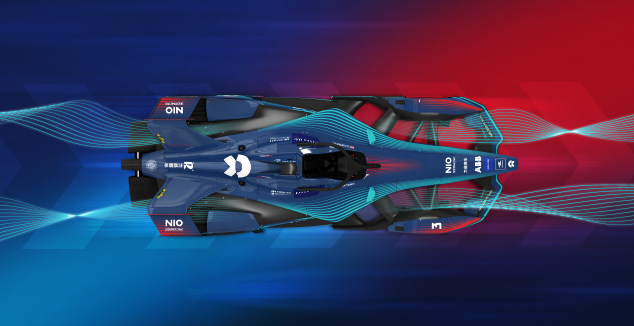 While the NIO blue and 333 Racing blue base colours were not drastically changed, we updated the side box lines to make them more "electric", which at first glance felt a bit cyberpunk and edgy whilst both relating and bringing an evolution of last season’s car. In the colour scheme we have added Chinese “red", which stands out but is not obtrusive, which will also make our cars stand out from other in the race.