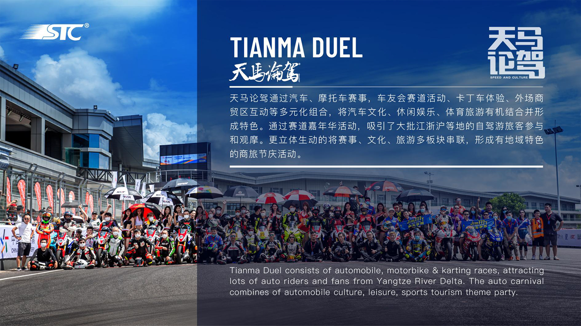 上海天马赛车场于2004年正式投入运营,其管理团队拥有着丰富的成功赛事运营及服务经验。上海天马赛车场寓玩乐、学习、竞技于一体,为享受汽车文化、企业公关活动、旅游度假、赛车休闲娱乐、安全驾驶培训等活动提供理想的服务平台。